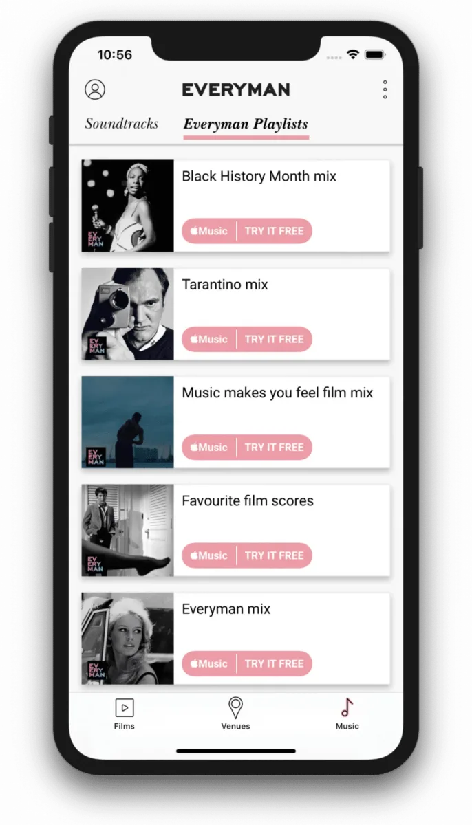 In partnership with Apple Music for Business and Apple MusicKit, the app’s unique features extend the customer’s cinema experience online. Everyman became the first cinema chain to allow customers access to film soundtracks, curated playlists and in-venue music through their app. Customers can even continue to listen to tracks whilst browsing through their film offerings and booking a ticket.