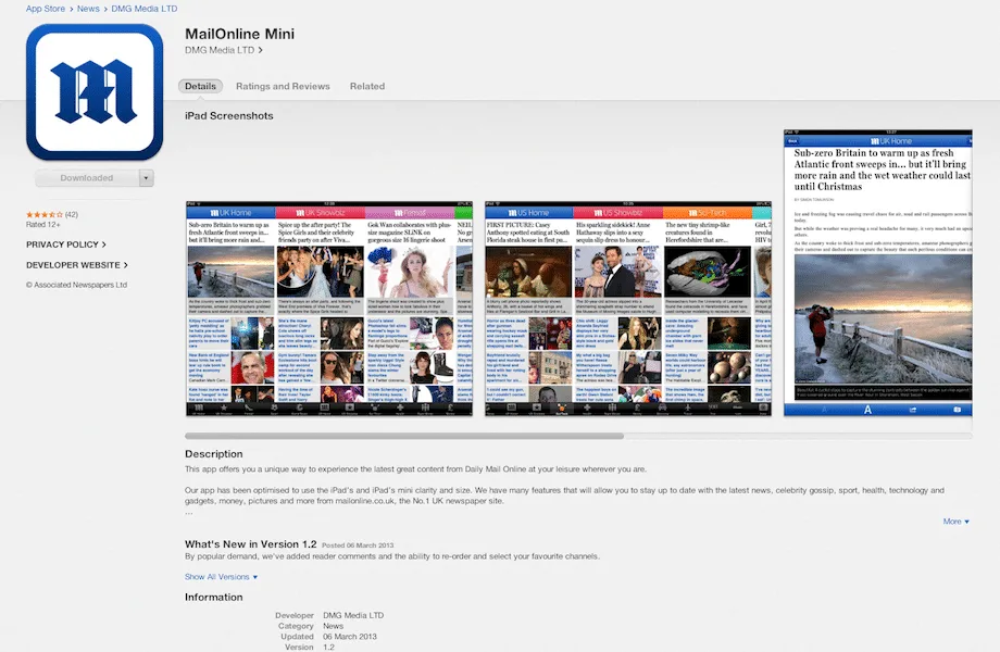 The iOS app integrates directly with a newly created live news feed API to provide customers with access to the largest English-language newspaper website worldwide with stories and photos from all of the MailOnline’s key channels, such as UK & World News, science & technology, sport, health, money, travel and more.